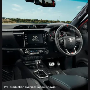 하이럭스 GR 스포츠는 다카르 랠리에서 영감을 받은 디자인으로 출시되었습니다. 새로운 바디킷과 크기가 키워진 전면 바디킷은 차량에 당당하고 강인한 느낌을 부여합니다. 더불어 토요타 레터링이 새겨진 전면 그릴과 은색 몰딩은 차량에 대한 주목을 끌어옵니다.
